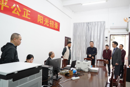 当天上午,我校高等学历继续教育招录工作领导小组成员:副校长肖起清、继续教育学院院长文雪、纪检监察室主任李永佳、现代教育技术中心主任张志华、纪检监察室副主任张扬超、继续教育学院副院长谢达新等莅临录取场,仔细了解了2024年上线考生的生源分布、录取专业等情况,对招录工作组全体成员的工作予以了肯定,要求大家要以严谨的工作态度和责任感,做到“公平公正、阳光招录”。